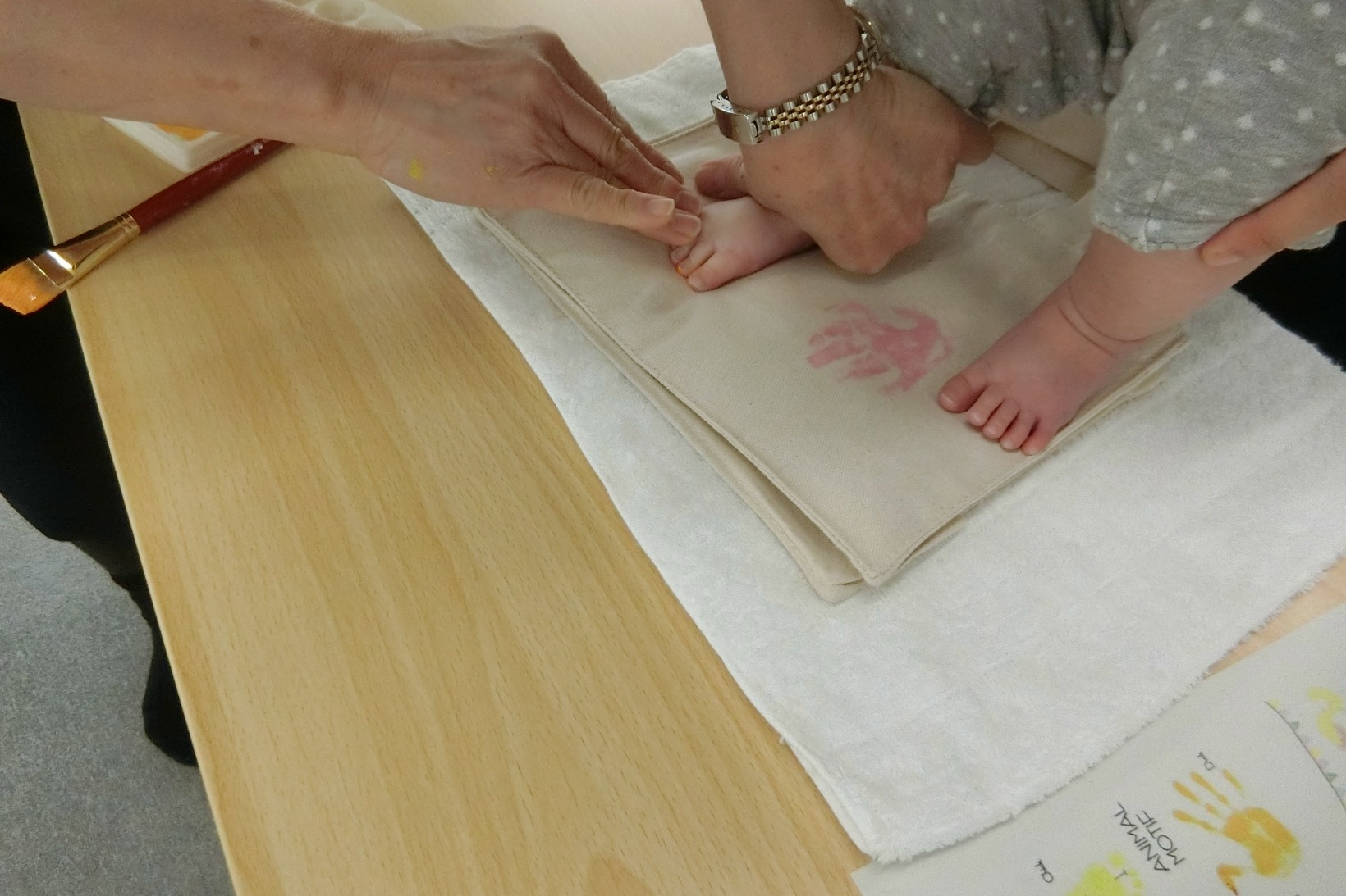 絵の具を足や手にペタペタと塗っているときは、なんだろう?と不思議なお顔。