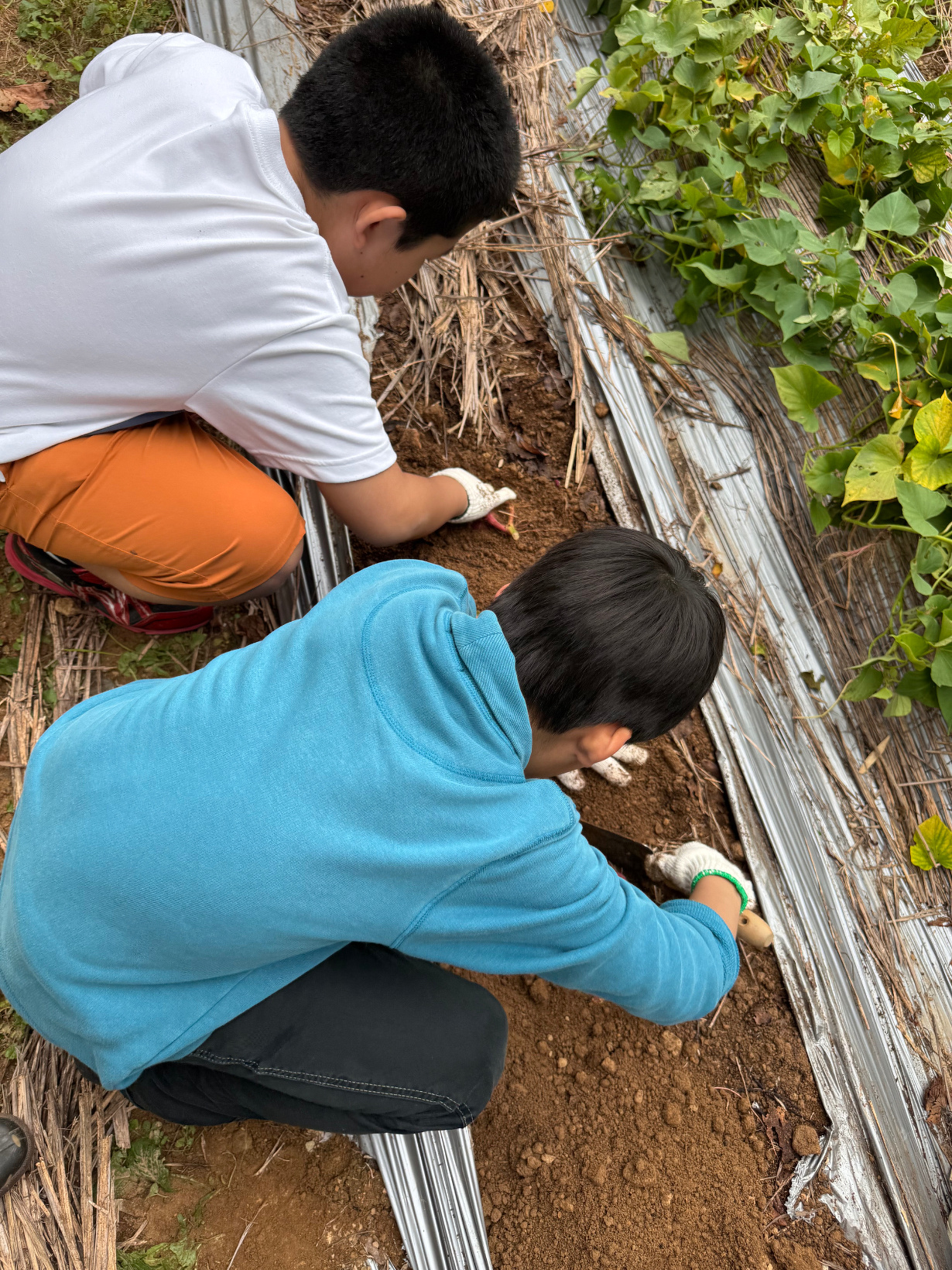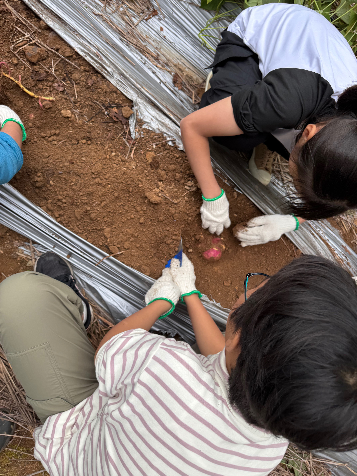 今日は放課後教室の前調べとして芋畑の芋の状況を