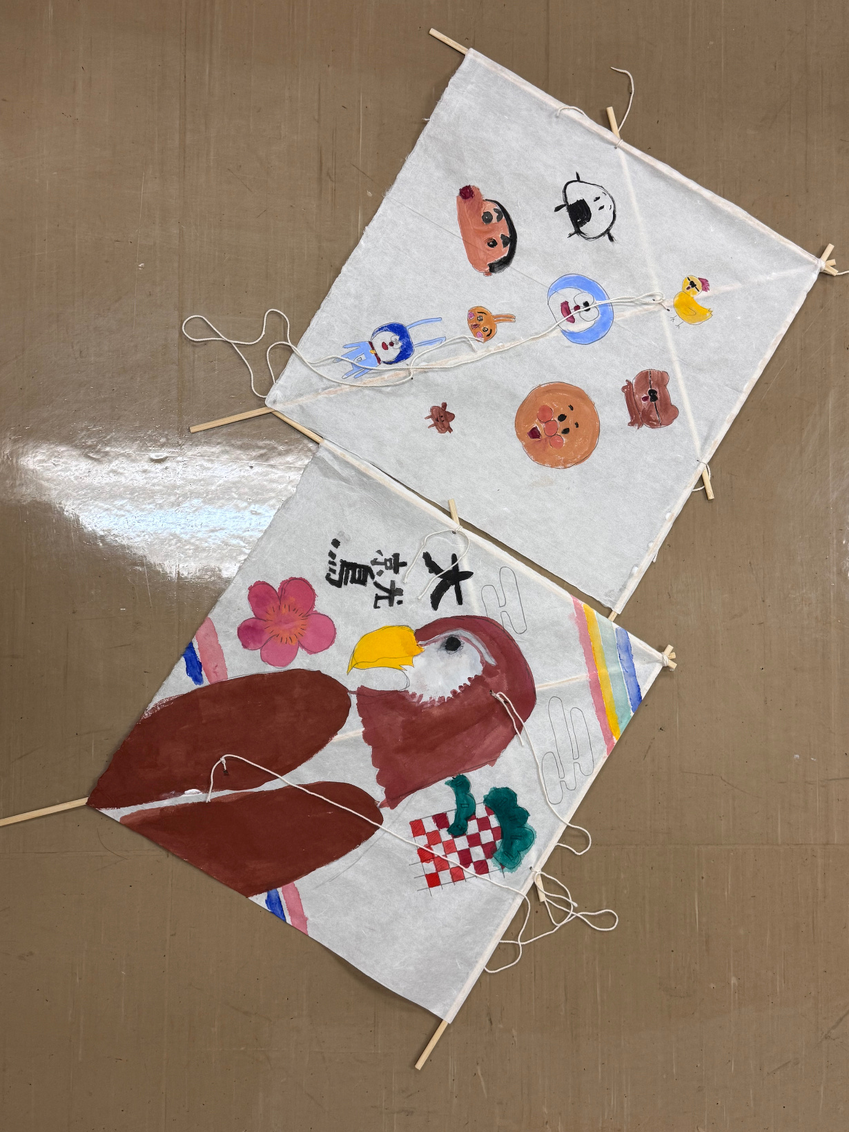2025年11月20日(木) 令和7年 < 今日の青少年の家 NEW 11月13日(木)放課後児童クラブドロップ こんにちは! 昨日の放課後児童クラブドロップでは 凧の仕上げ作業をしました! 和紙への下書き、色塗りも終えて いよいよ仕上げで職員もドキドキ!!! タコ糸、ボンド、凧用の竹を使い 和紙と竹を貼り付けタコ糸でしっかり固定し完成します♫ なかなか固定が上手くいかず苦戦していましたが 職員の力をかりながらも最後まで作りきりました*\(^o^)/* せっかくオリジナルの凧を作ったので お正月に青空になびかせてほしいものです⭐︎