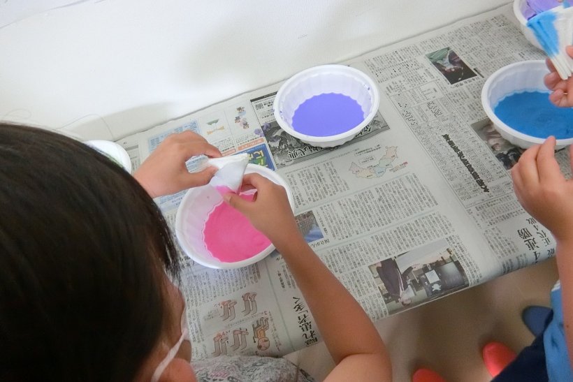 2022年05月28日(土) 令和4年 < 今日の青少年の家 5月26日(木)(放課後児童クラブ) こんにちは! 今日は昨日とは違い,、雨がよく降り少し蒸し暑いように感じます( ;∀;) 昨日は毎週水曜日開催の放課後児童クラブで...『うちわつくり第1弾!!!』 今回は和紙を折る所から色づけまでおこないました♪ 和紙のつけ方により色々な柄ができあがり、うちわに変身し完成となるのが待ち遠しいです(`・ω・´) 次回のうちわつくりで作品完成となりますのでお楽しみに(*´▽`*)