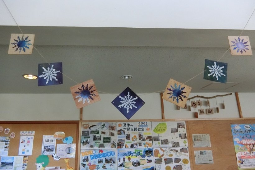 12月6日(日) 雪の結晶 こんにちは 朝は曇りでしたが、昼間から晴れキレイな青空になりました。 昨日、親子キャンドル教室も終わり、大集会室に飾りつけしていたものを現在はロビーに飾っております。 折り紙で作った雪の結晶、ベニヤ板にペイントした雪の結晶、綿で作った雪だるまなど ロビーの飾りはクリスマス一色となってます。来館の際は秋からの変化をお楽しみください。