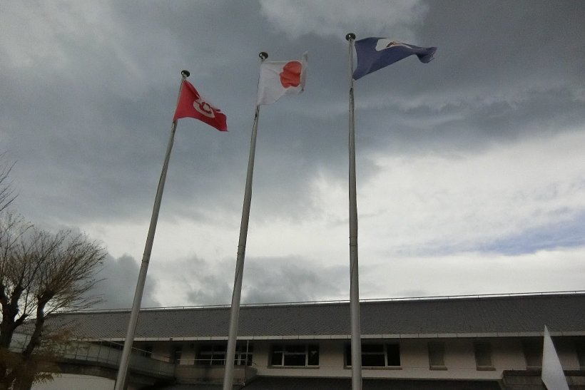 4月13日(月) こんにちは 今日は雨の予報でしたが、雨は降らず晴れているな~と 思っているとだんだんと曇ってきて、びゅ~~~っとものずごい風が!!! 外に出ると気温も低く寒いです。。。春になったはずなのに。。。 青少年の家は、毎日3つの旗を揚げていますが今日は旗も バタバタとおとを立てていて寒そうです(;_;) 明日は晴れるといいですね♪