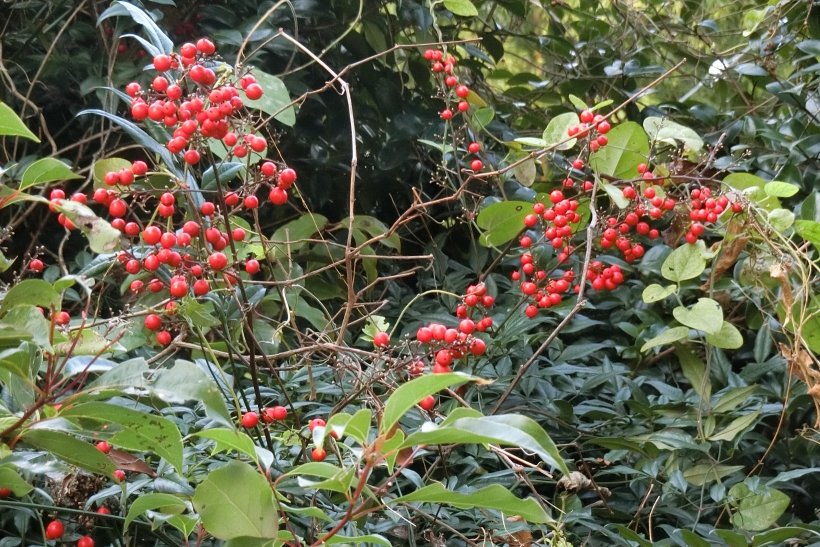 2021年12月22日(水) 令和3年 < 今日の青少年の家 12月21日(火) こんにちは 本日は珍しく雲が出て昼から、曇りになりました。 12月も下旬に入り、いよいよ年末に近づいてきました。。 年末の飾りになるような植物を探していると、青少年の家の周辺に南天の実が色づいていました。 来年の正月も門松を作る予定なのでこの南天を使用して作りたいと思います。