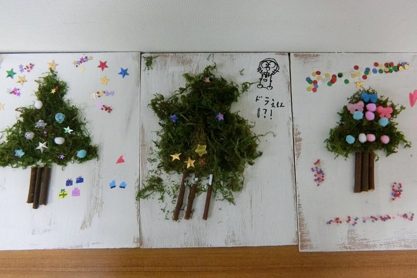 12月8日(木)放課後児童クラブ こんにちは! 昨日の放課後児童クラブでは、クリスマスツリーつくりをしました!!! 木の板にクリスマスツリーをどんな形にするかを決めたら モスという緑の綿のようなものを貼り、枝を選んで木をつけて☆ ツリーの飾りをつけ、木に絵などを描いて完成♪ こだわりがみんなあって、飾り選びをすごく悩んでいたり... 出来上がっても微調整したりと楽しい教室となりましたヽ(^^)(^^)ノ♪