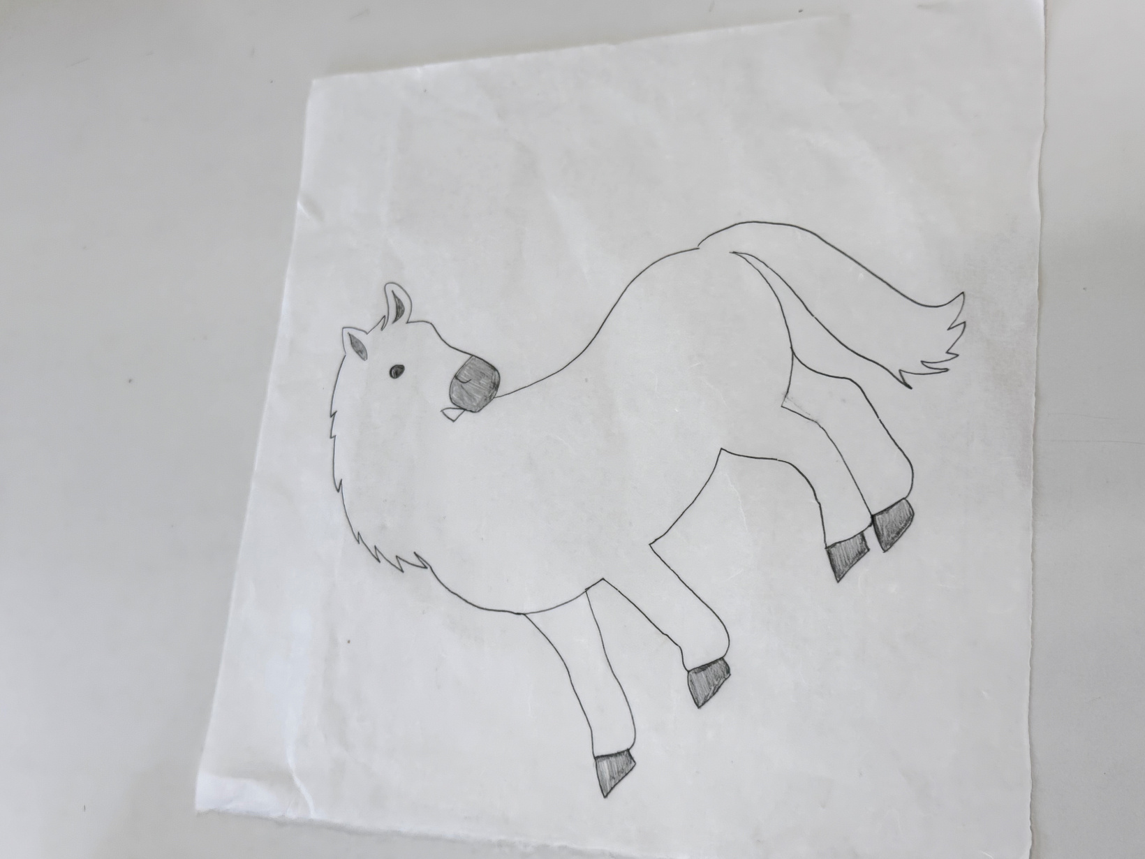 10月11日(土) こんにちは! 以前掲載した真っ白な和紙にまだ下書きですが 職員が来年の干支のかっこいい馬を描いてくれました!!! 凛々しく今にも動きだしそうな馬に見惚れますね♪ まだここから周りの装飾も増やし色塗り作業へと 順番に作業が移っていきます(`・ω・´) また完成しましたら掲載しますのでお楽しみに✿