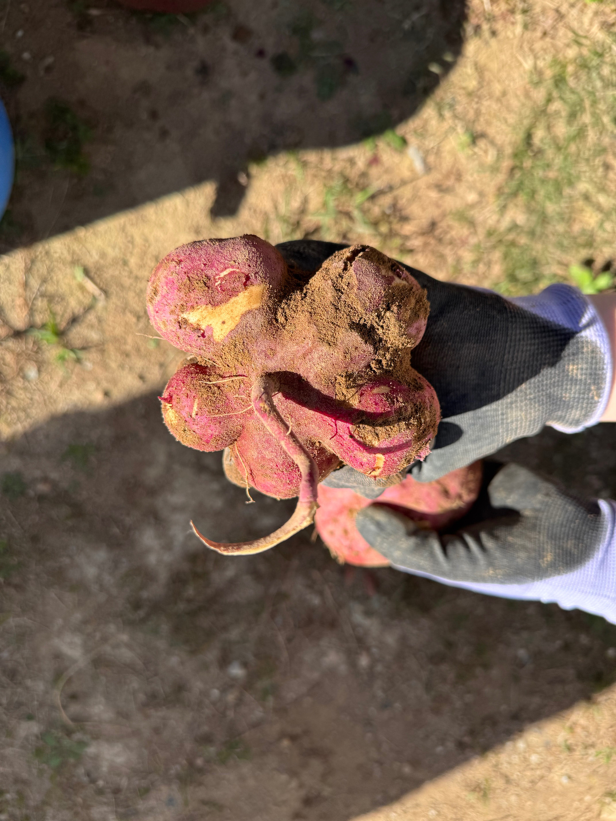 11月19日(水) こんにちは! 今日は放課後児童クラブで残ったお芋を職員で掘り起こします!!! 2畝残っていますがどれくらい取れるかな?と掘り進めていくと... 今年はお芋のなりようが少ないながらも思ったよりも取れました(^^♪ ここ数年は暑さに頭を悩まされていますが 少しでもできたので一安心です(*´▽`*)