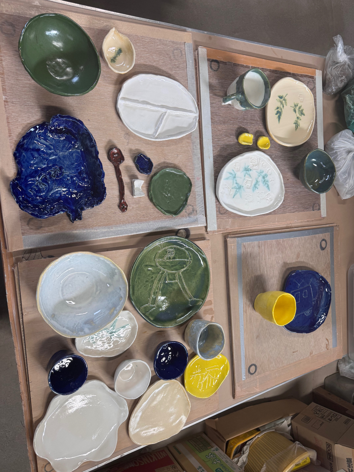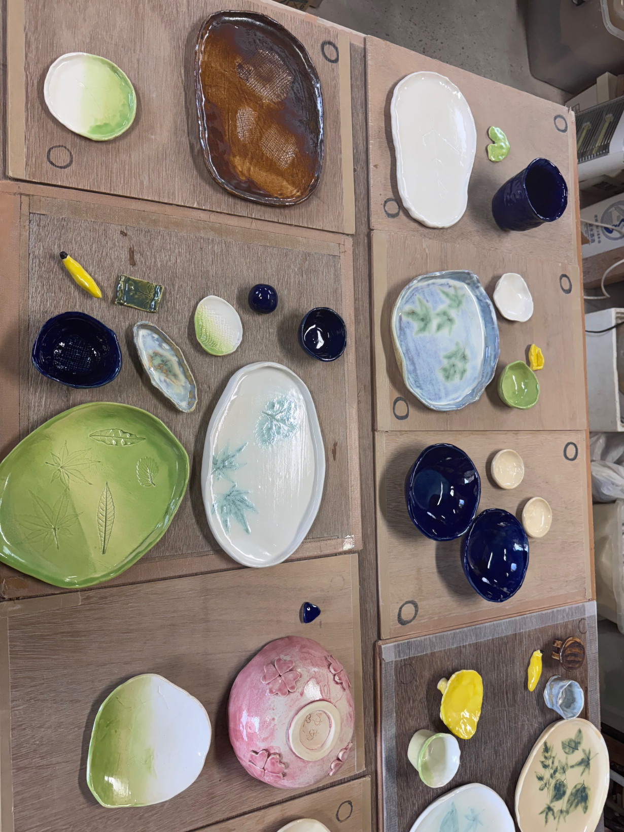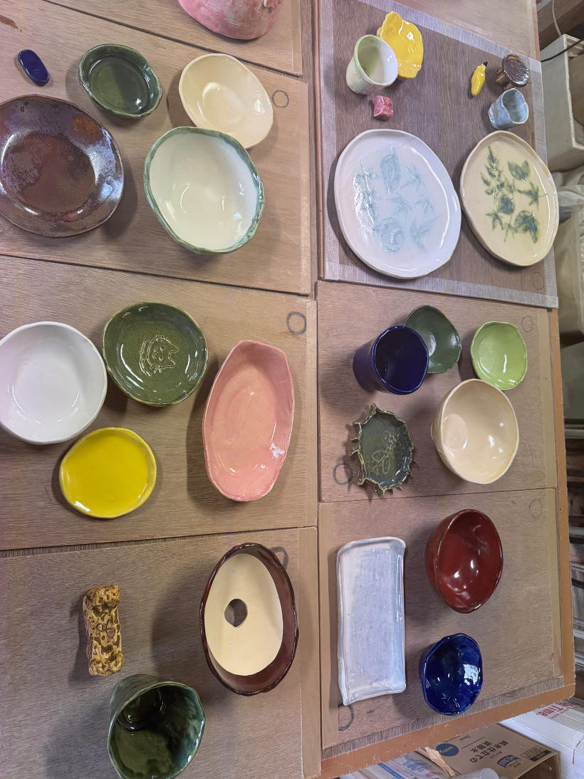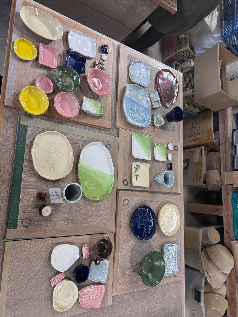 11月23日(日) こんにちは! 10月に開催した陶芸教室の作品が焼き上がったと連絡があり 割れないように梱包させていただき 先生の所から皆さんの作品をお預かりしてきました✿ とても光沢があり、皆さんの好みの色を付けていただくと 世界に1つだけの陶器にすごく目をひかれます(^^♪ 順次ご連絡をさせていただき作品を取りに来ていただこうと思います♬