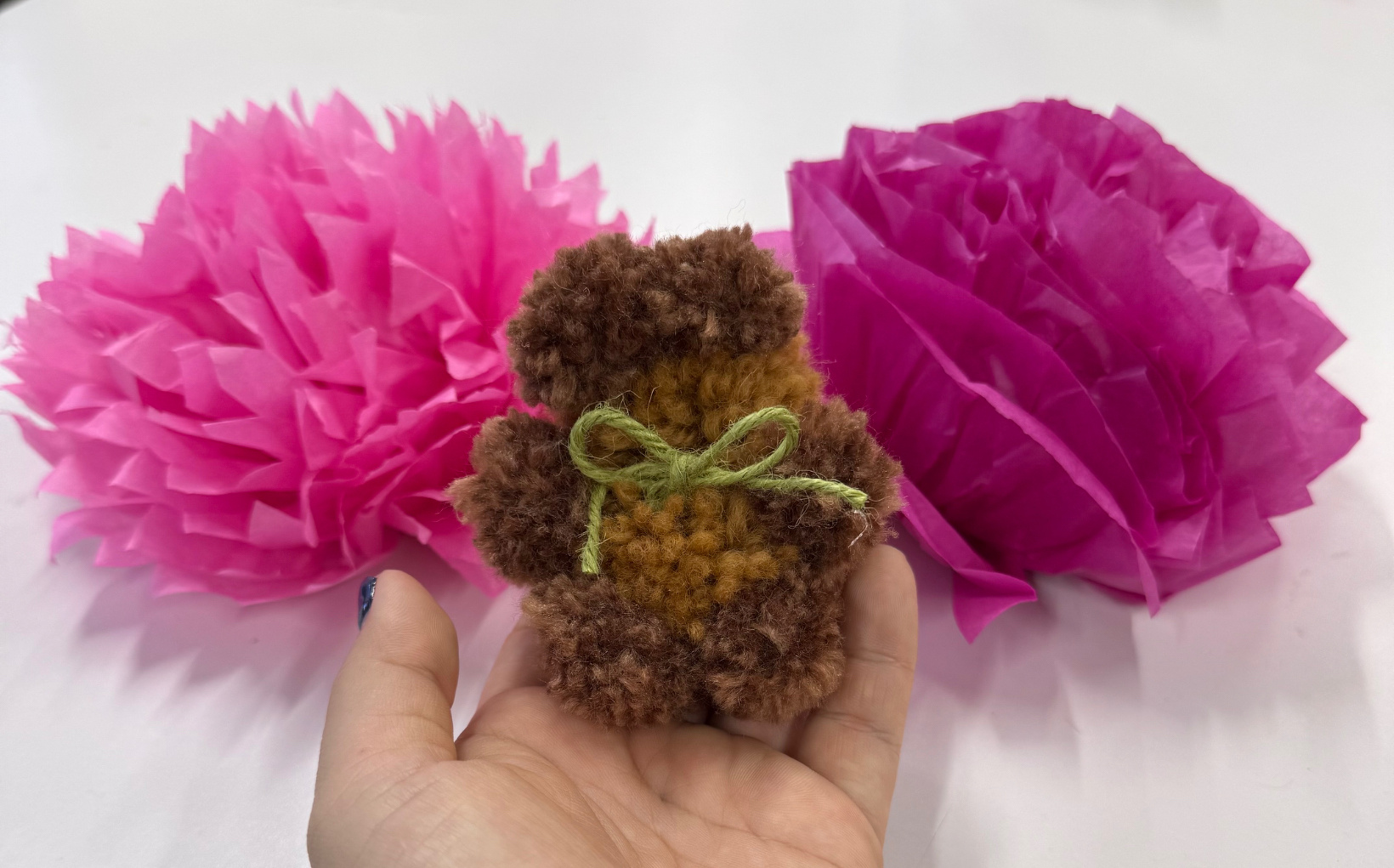 12月19日(金) こんにちは! 今回は3月のメモリアルアートのプレゼント時に渡す 写真立てにつけるクマちゃんが職員のてにより 完成に近づいています!!! 最初は毛糸をくるくると巻き付けることからはじまり 色合いを少し前回とは変えてみたりと 一工夫がとてもインパクトのあるクマちゃんへと変身しました(^^♪ また完成しましたら掲載しますのでお楽しみに☆彡