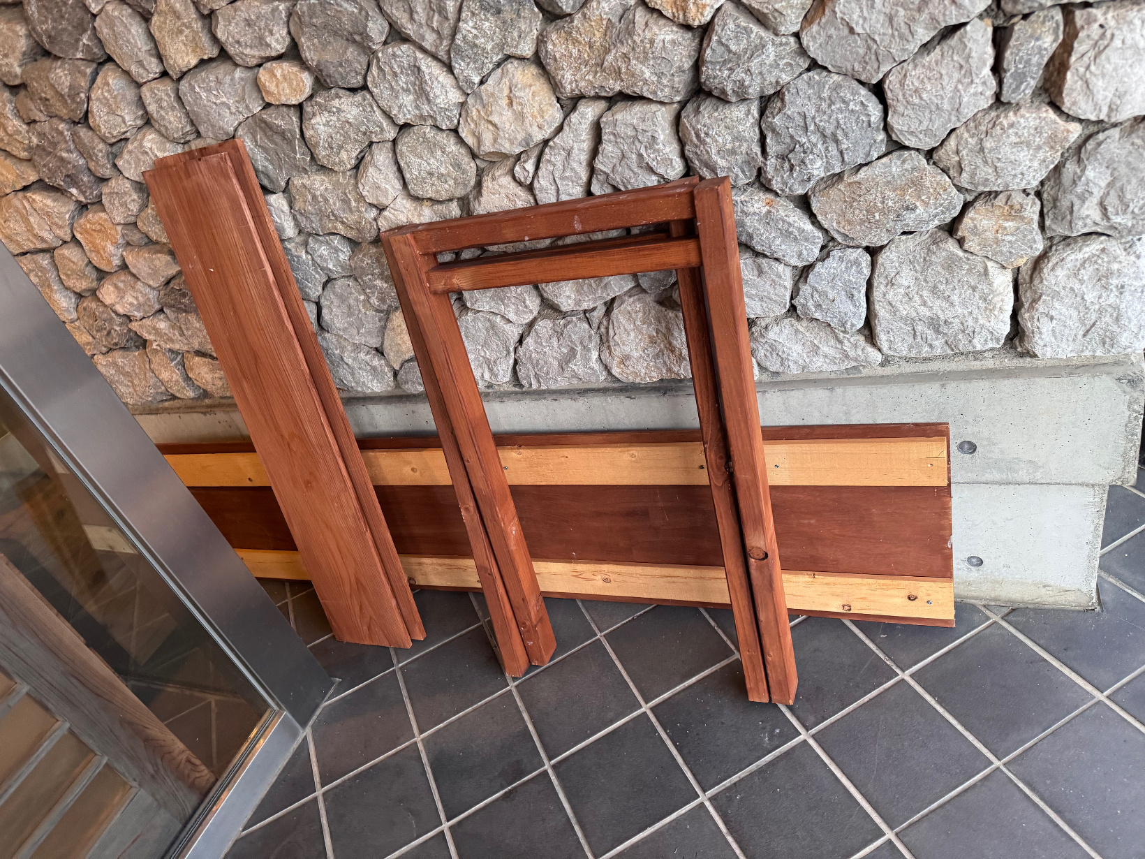 12月26日(金) こんにちは! 今年も残すところ1週間をきりましたね...! 昨日から寒さが本格的になり実にしみますね(;´・ω・) 11月に行われたハーブ教室時に ハーブを置く用に職員お手製の台を使っていましたが 脚がねじのゆるみや台の支えとなる棒が壊れてしまったので 新しいものへとカットし塗装をして乾燥をしています(`・ω・´) 合わせて少し小さな花壇がへの前進駐車用の看板も 外に置いておくため雨に負けないようニスを塗りました!!! また乾燥させることができそれぞれ完成しましたら掲載します(^^♪