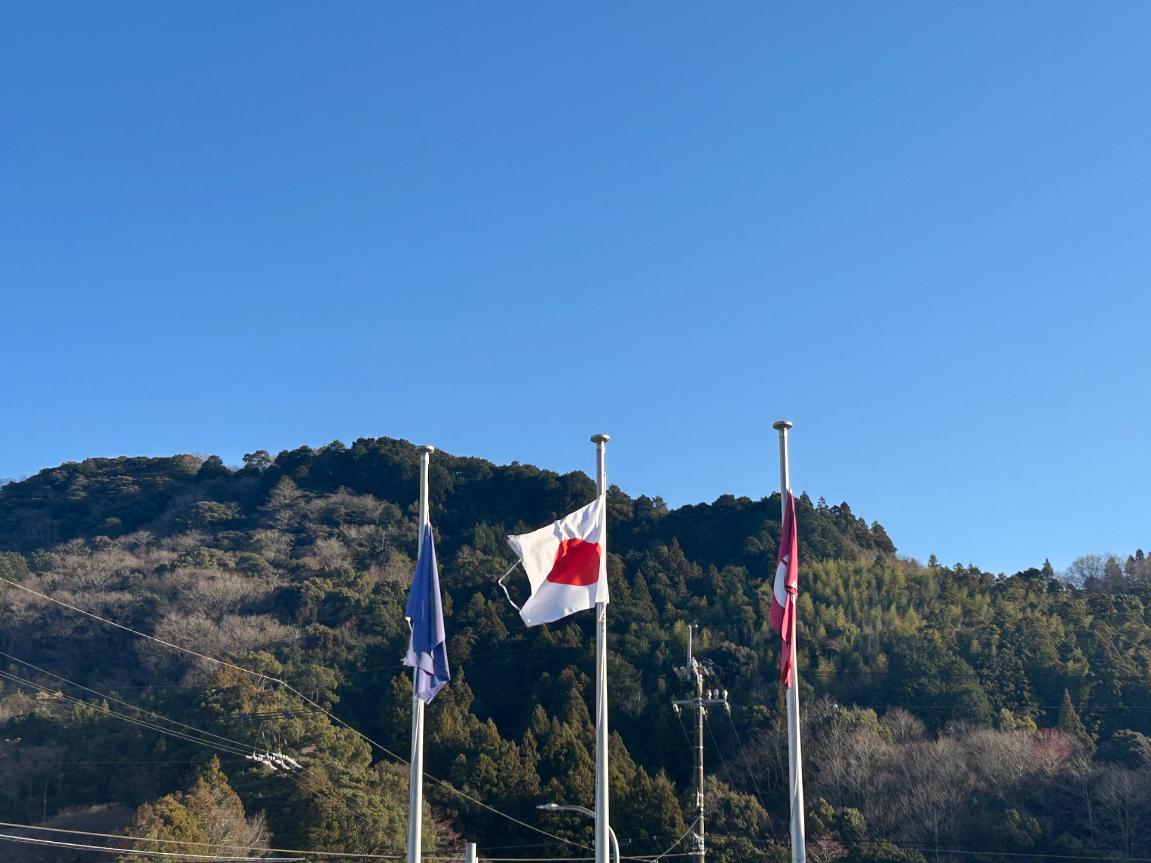 1月31日(土) こんにちは! ここ数日は風の強い日が続きましたね。 気温が低いのもつらいですが、 風が強いとさらに外出が億劫になります。 なんと強風の影響で施設前に掲げている国旗が裂けてしまいました(>_<) 一日中風に吹かれてダメージを受けたようです。 そろそろ新しいものと交換したいと思います✿